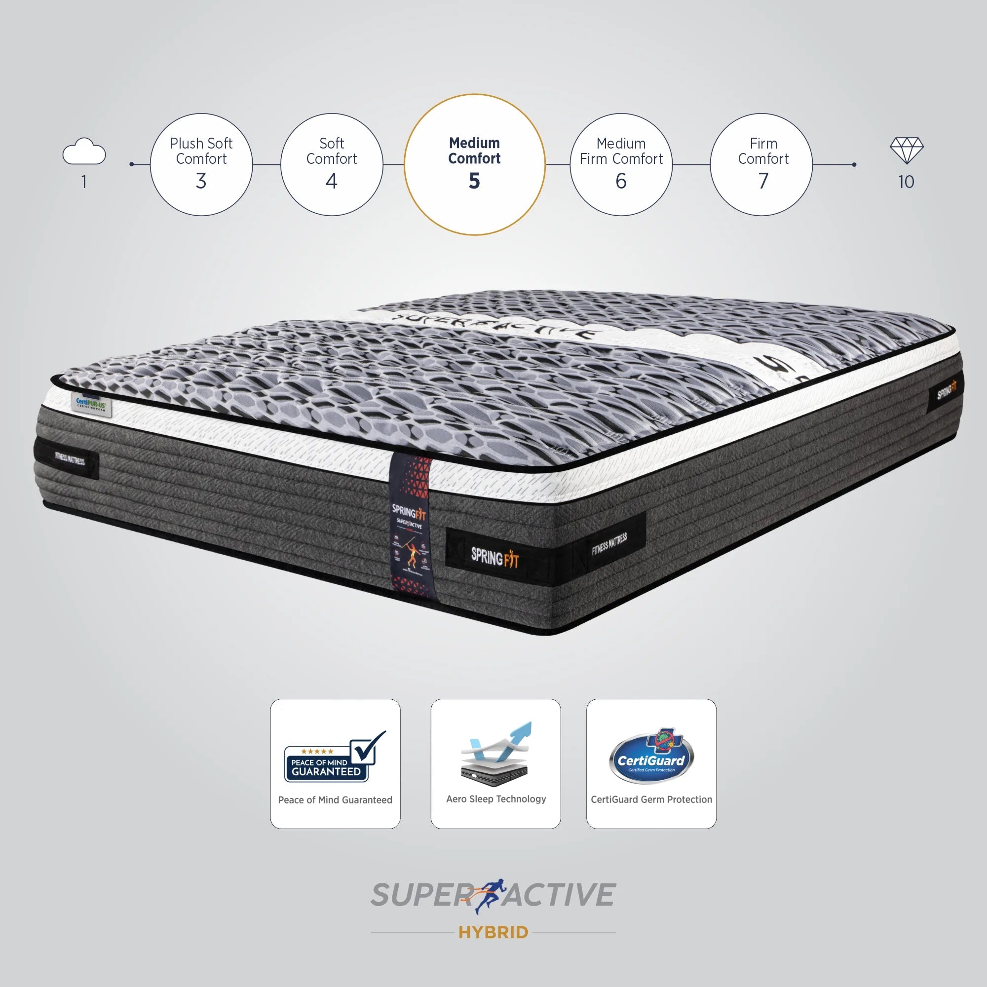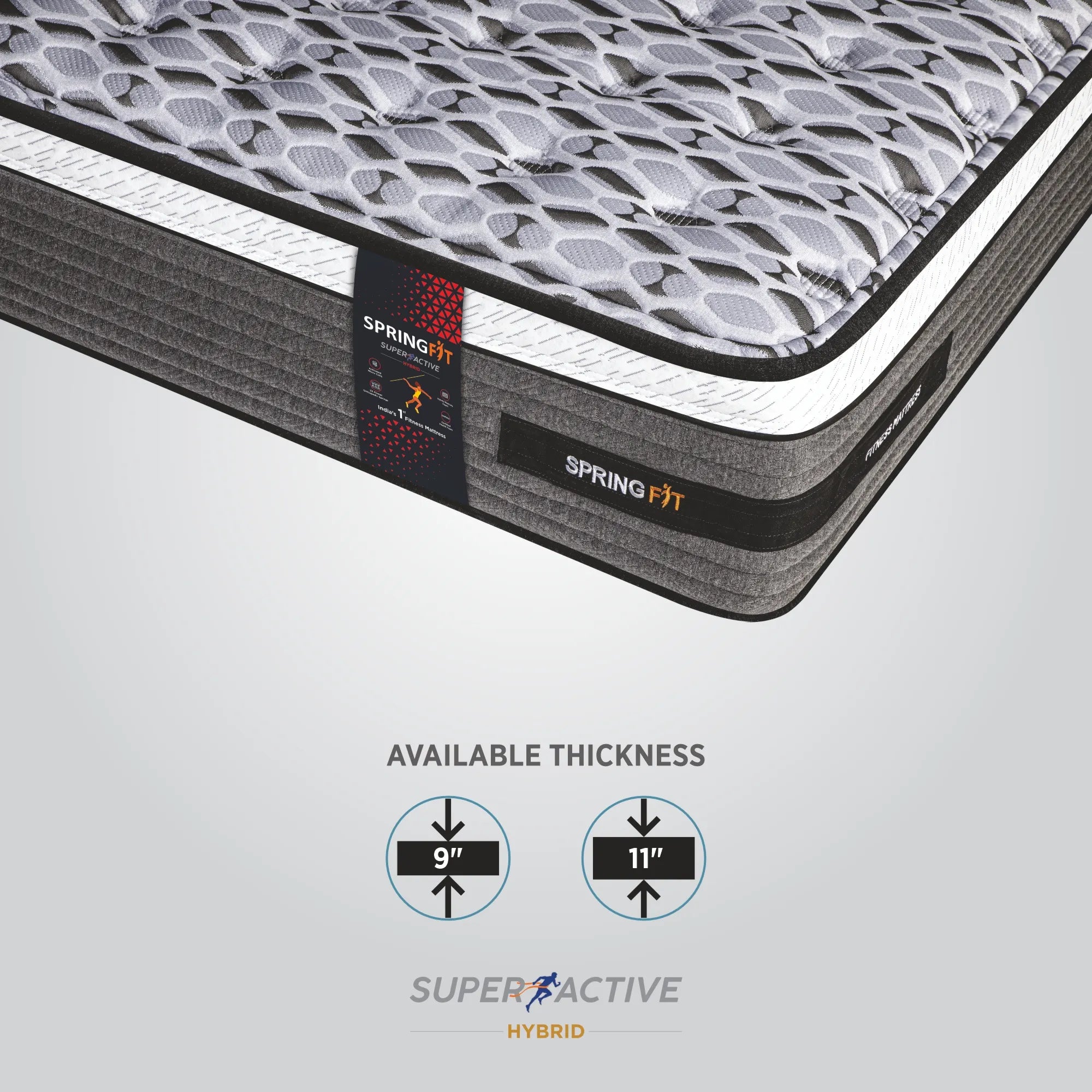 The Super Active Hybrid mattress is made of high-resilient support foam to provide support and comfort for your body. Support foam is open-cell, high-density foam with a soft dispersion quality that helps to eliminate body pain making it one of the best choices. Additionally, this foam is made with Aero Sleep technology to increase mattress breathability and encourages sweat-free sleep every night.