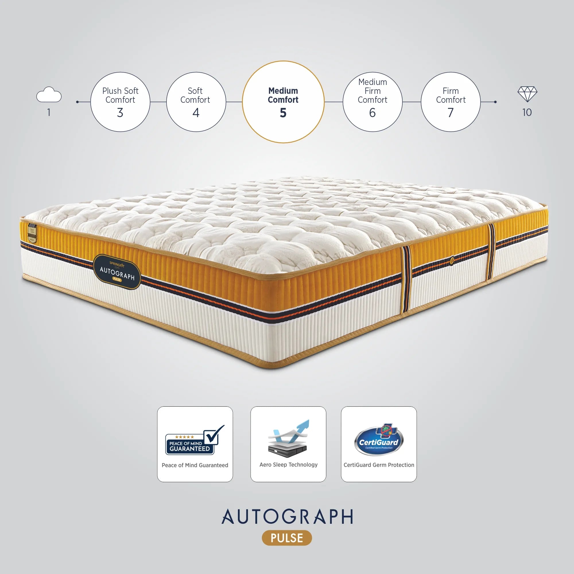 Springfit High Resilient Comfort Foam is made with Aero Sleep technology that promotes ample airflow and give adequate comfort to body. HR Comfort foam has softer feel so the body can relax better.