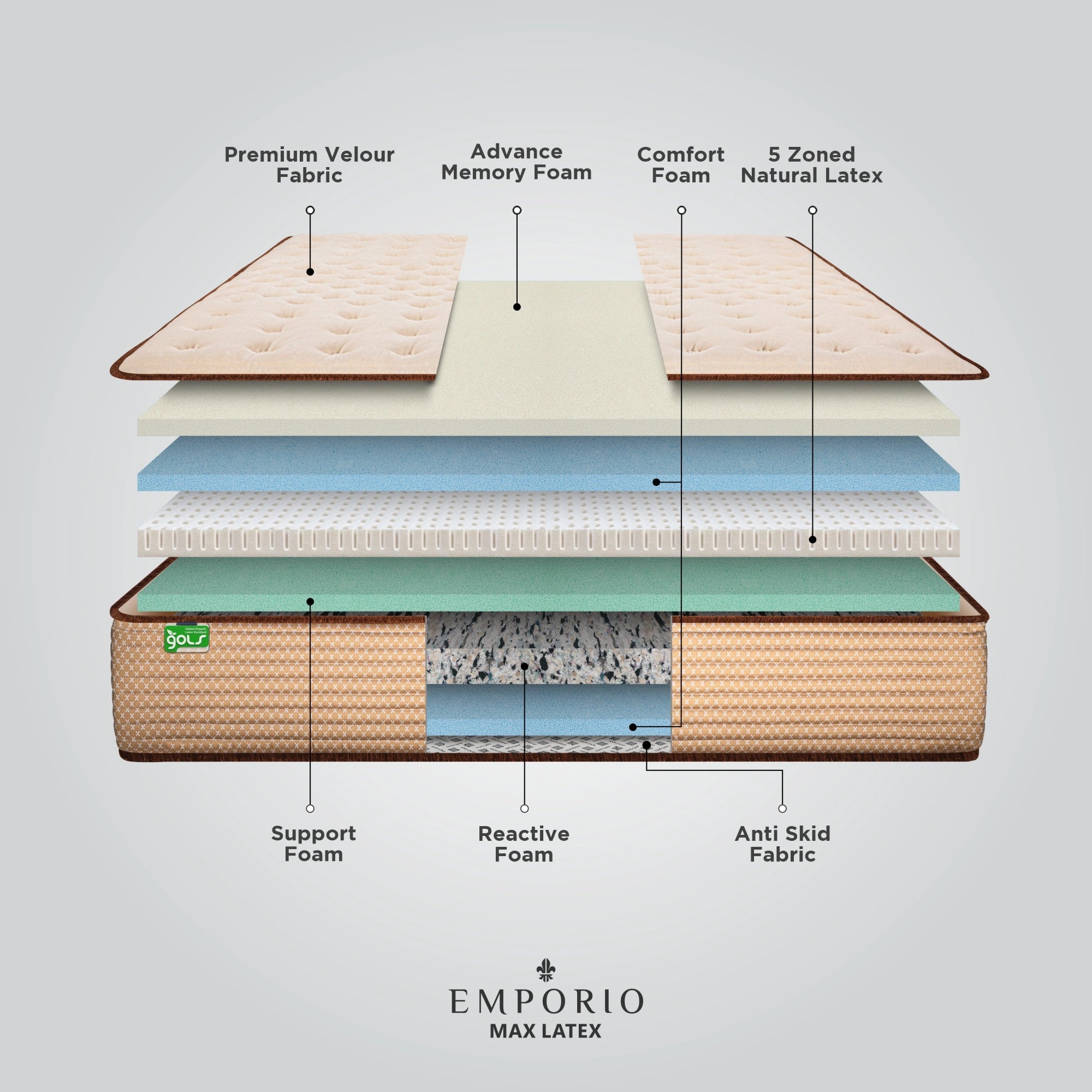 Made with biodegradable materials, Latex is a resilient material, it can support sleepers with placing excess pressure on hips & shoulders, & contours just enough to support proper alignment. Latex promotes a healthy and safe material to sleep-on.