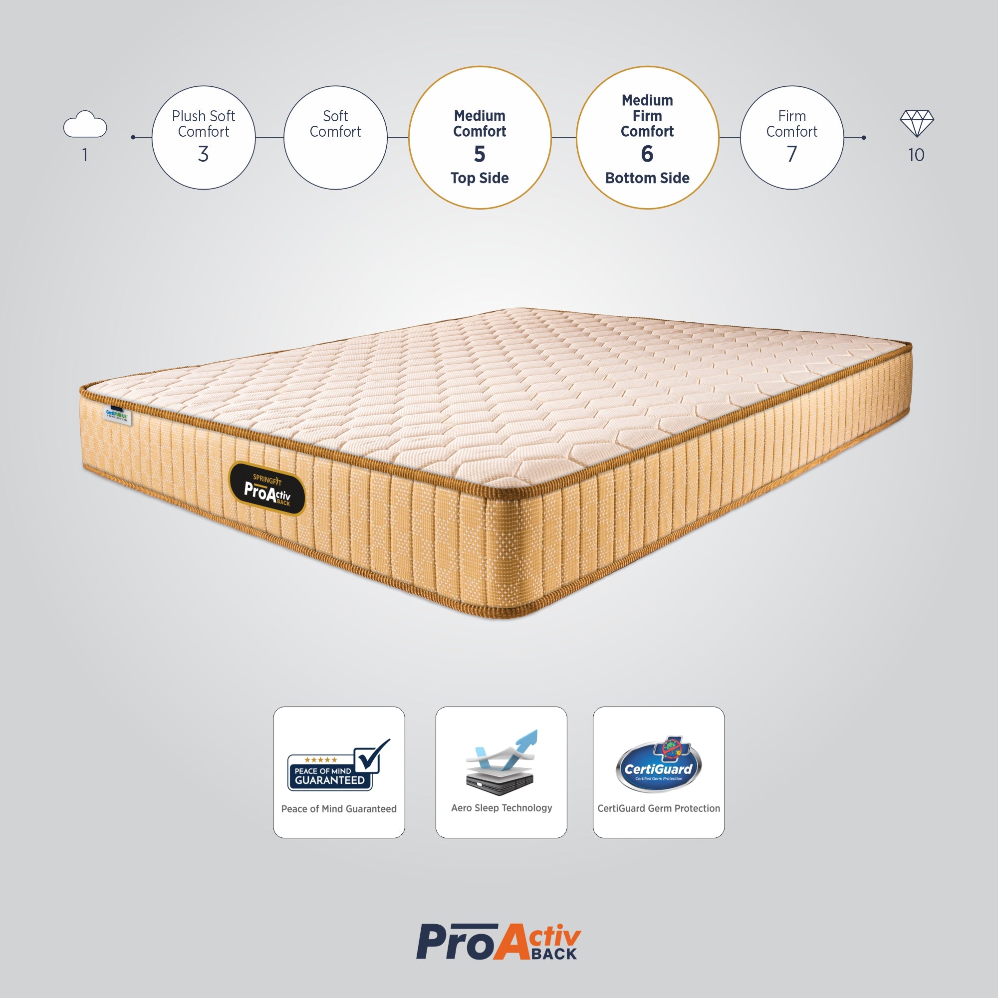 Springfit High Resilient Comfort Foam is made with Aero Sleep technology that promotes ample airflow and give adequate comfort to body. HR Comfort foam has softer feel so the body can relax better.